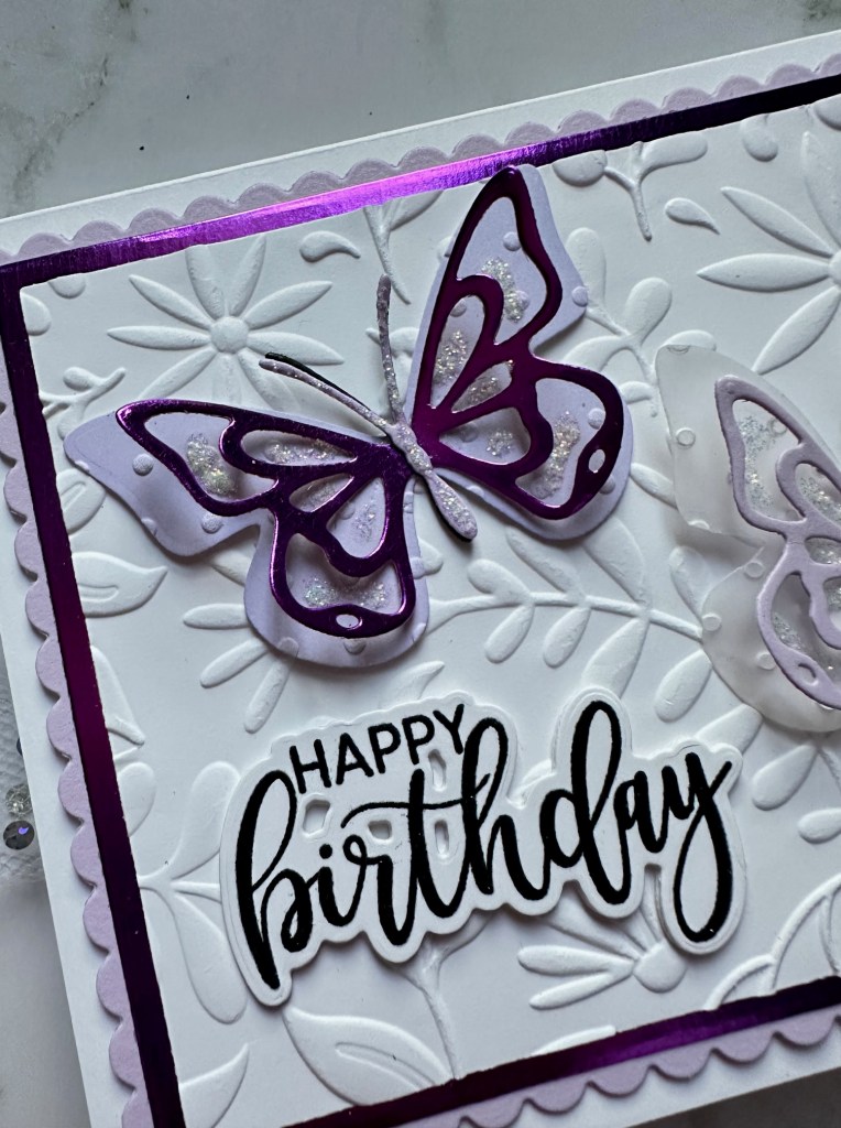 I always think I am going to get ahead on my cards so that I have a stash of them, but for whatever reason, it never seems to work out that way. I made this card for a dear friend’s birthday earlier this month and I think it’s perfect for Spring with the butterflies.